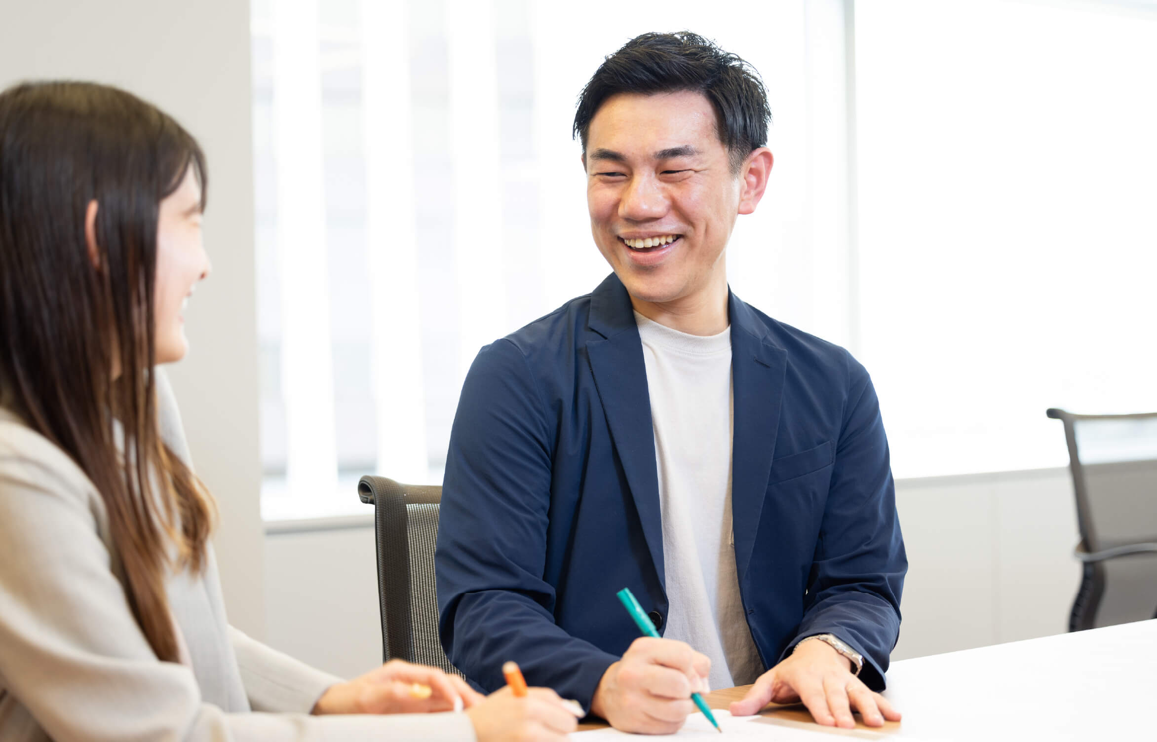 社員同士の仲の良さは、取引先からも「うらやましい」と言われるほどです。プライベートでは飲みに行ったり、事務所での雑談も多く、和やかな雰囲気があります。一方で、仕事の話になると一気に真剣モードに切り替わるメリハリのある文化が根付いています。体調不良で欠勤した際には、チーム全体で業務をカバーしてくれたこともあり、支え合う風土があることを実感しました。