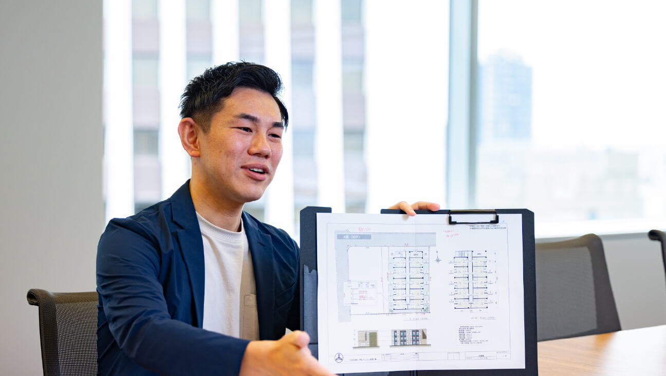 オーナー様にJ.S.B.の学生マンションが持つ安心・安全・快適という強みや社会的意義を丁寧に伝え、信頼関係を築けた結果、次の案件でも相談をいただけた時は、仕事の価値を実感します。自分のアイデアが形になり、学生の新生活が始まる瞬間に立ち会えるのも大きなやりがいです。